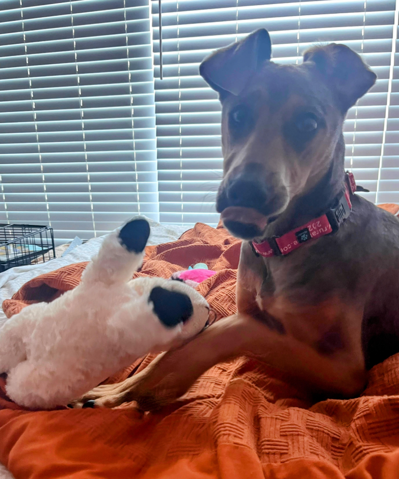 My foster says that I’m a playful, loving girl who loves to play and learn new tricks!