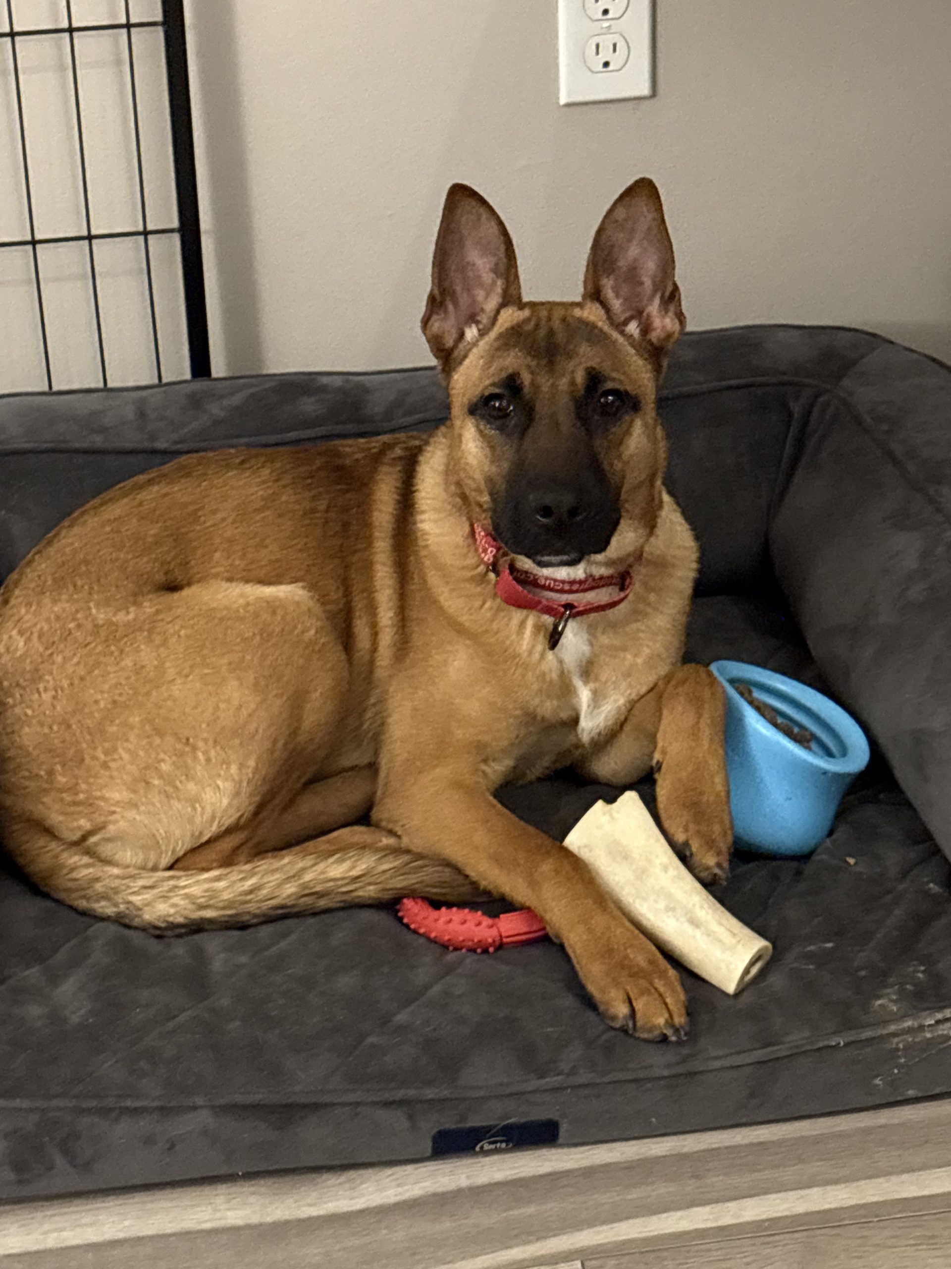 Some of my favorite activities include playing with other dogs (I’m super great at the dog park and daycare, and everyone gives me compliments on how well I read the room and how nicely I play). I also love playing with my toys, especially ones with a squeaker, and eating treats of any kind, but especially yogurt! Chobani brand deal, here I come! Other favorite activities include chewing on my bones and bully sticks, working on food puzzles, and napping! My bed is my happy place, and anytime I’m bored, or not sure what to do, I just go snuggle up with my blanket to take a rest! If you’re new to dogs, this is a super cool skill! Sometimes pups who get bored go looking for things to get into, but I prefer to just take a snooze!