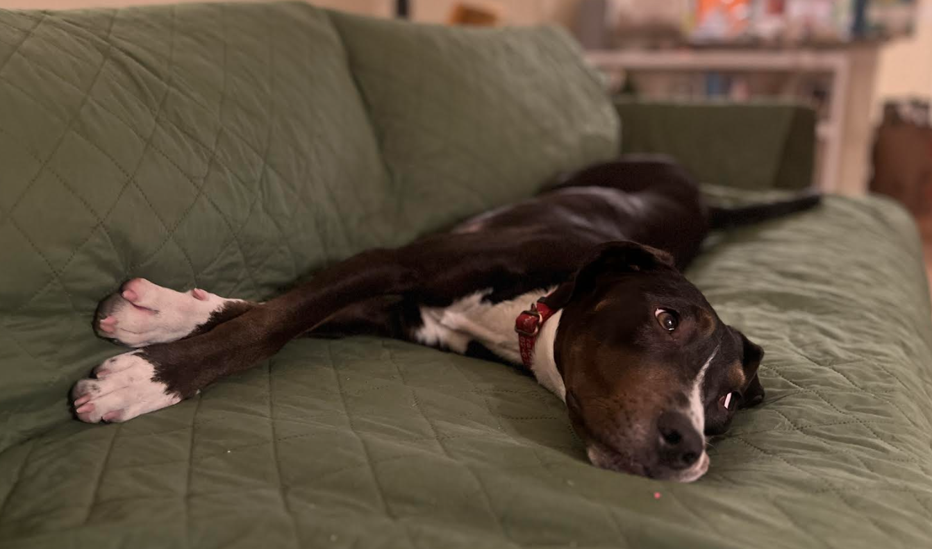 One of my favorite things to do is play with other dogs! I absolutely love making new doggy friends on playdates, walks, at the dog park, and just about everywhere else! I have the best time ever running, and chasing, and wrestling, and jumping and getting the zoomies with all my canine besties.  Other activities I enjoy are spending time with my foster family, going on nature hikes, and eating snacks.  I also love getting all the cuddles and pets, and snuggles on the couch!