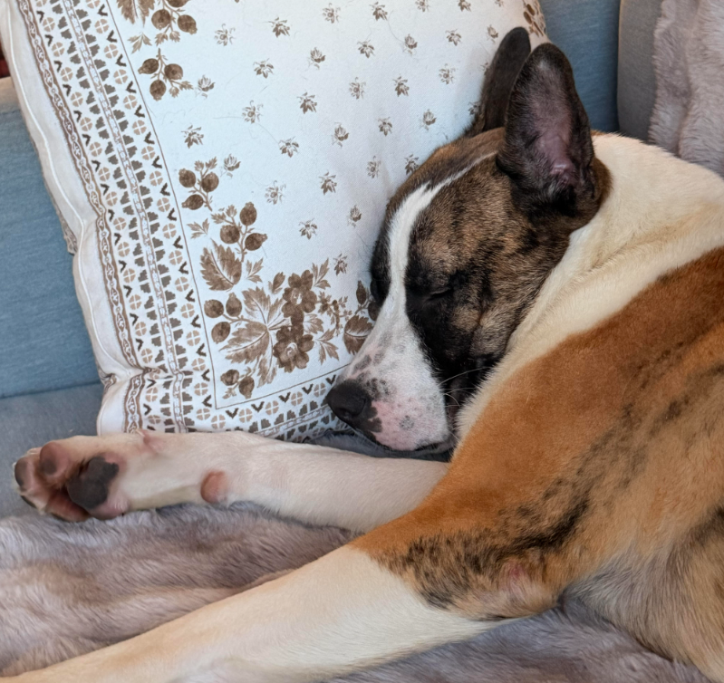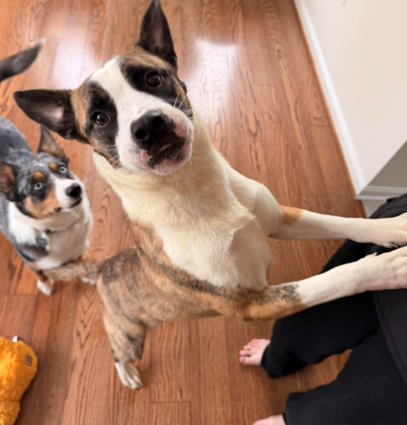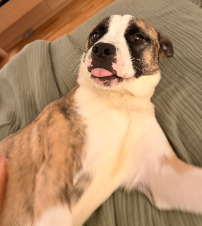 Snuggling is one of my favorite activities. I like to give my foster mom hugs by pushing my nose into her body, slowly leaning further and further in until my butt is in the air, and then eventually sliding down so I can get belly rubs. My foster thinks this is very adorable, and I agree! I love getting all the attention, and am more than happy to play therapy dog and let people pet me all day long. I’m a giver!