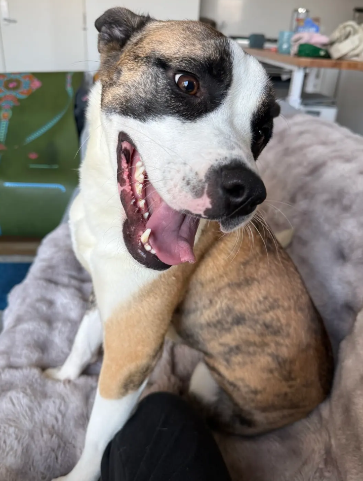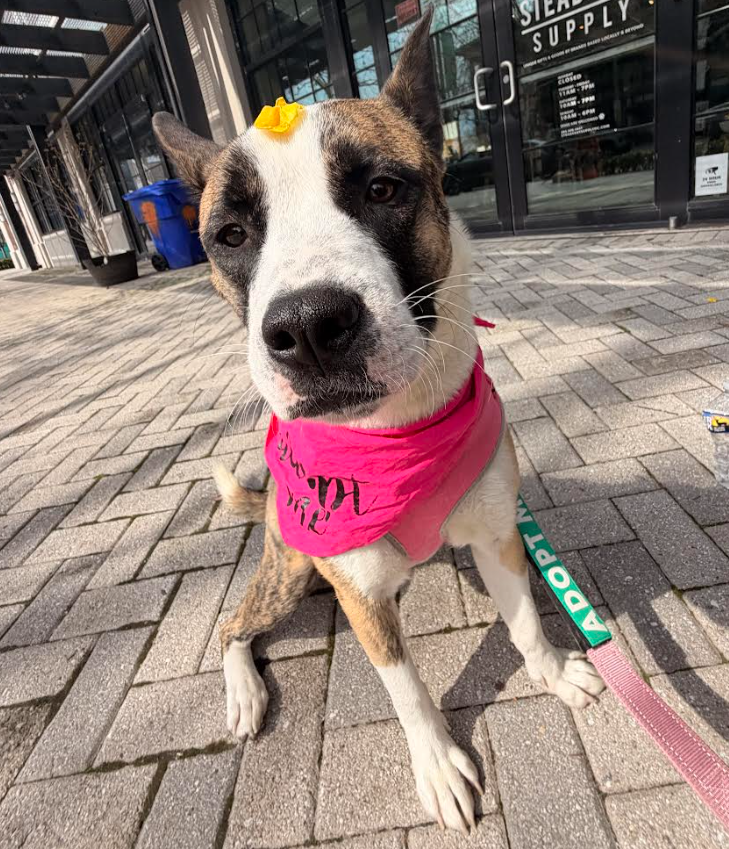 I was found as a stray, so I’ve had some hard days. I’m a nervous girl when it comes to loud noises and new experiences, but I’m gaining confidence every day! My foster mom says that even when I’m scared, she can tell I’m doing my absolute best to adapt and be brave, and that I’ve done an amazing job adjusting to life in the city so far. I trust my people, and if they say something scary is actually safe, I’m willing to give it a chance. For example, when I first heard the TV turn on, I was not a fan, but now I love curling up with my foster mom to watch a show!