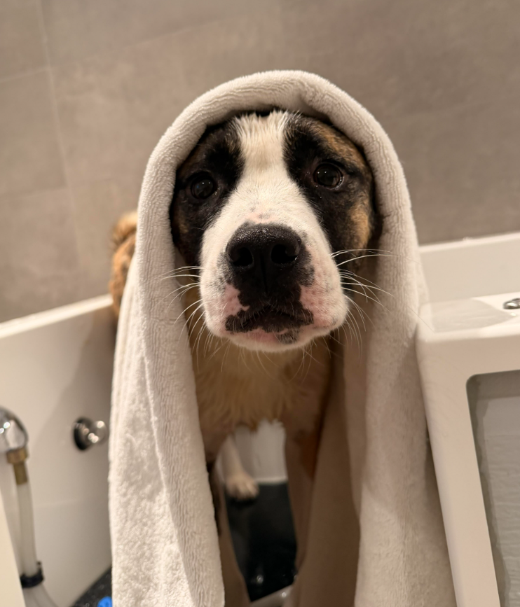 I’m a smart cookie, and in addition to ‘shake’ I know ‘sit’ and ‘leave it’. I’m also very good in my crate! My foster mom works in the office, and I don’t mind entertaining myself with my toys or bones while she’s out making the treat money. I know I’ll get all the snuggles and cuddles once she’s home!
