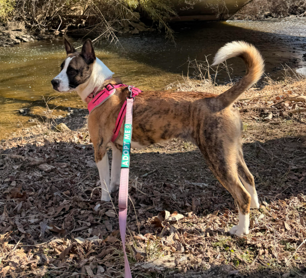 I love playing with other dogs, and I learn really quickly from my doggy friends. I once learned ‘Shake’ just by watching another pup get a treat for doing it! I’d love to join a family where I had a doggy sibling, I promise I’d be the best addition to any pack! I’m polite and well-behaved on-leash and at home, and also a quiet lady, so if you’re looking for a pup who doesn't make much noise, I’d be perfect!