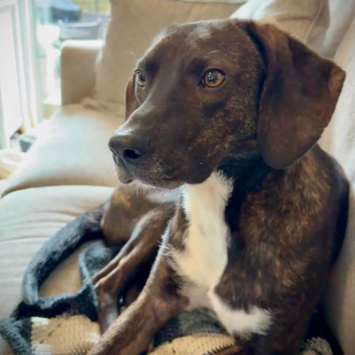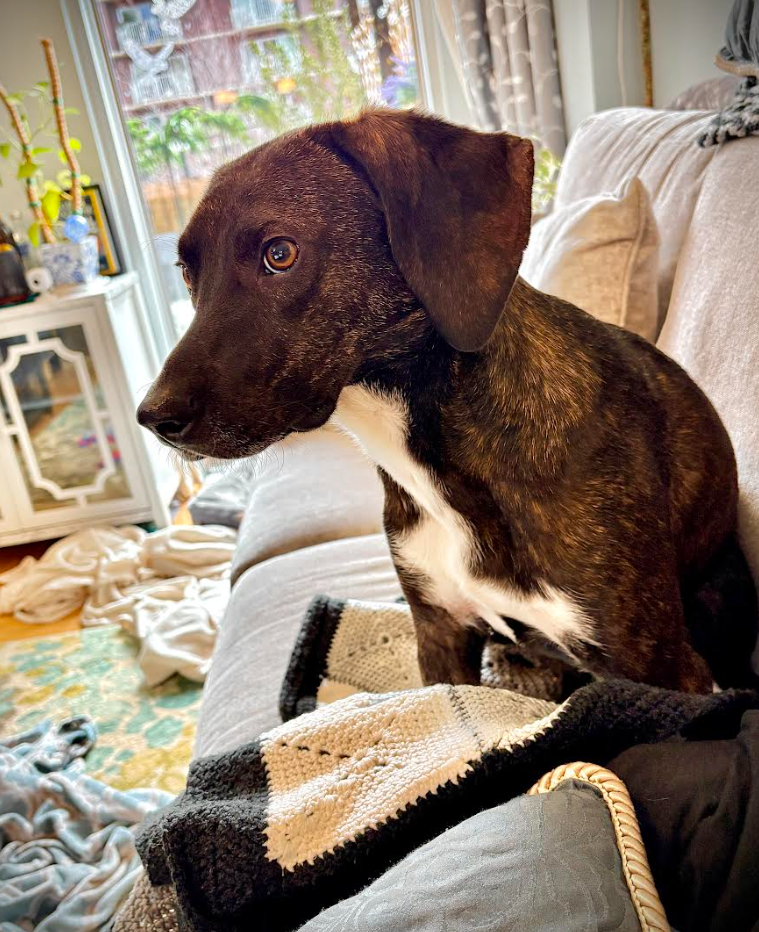 My foster mom describes me as ‘very polite and well-behaved’ because I’m crate trained, potty-trained (for the most part, with an occasional accident due to nerves or schedule changes), and don’t try to get on the furniture. I've mastered 'sit,' lay down,' 'wait,' 'drop it,' 'touch,' ‘come’ and ‘leave it’ (currently working on 'heel') and I’d be happy to learn even more tricks with my forever family.