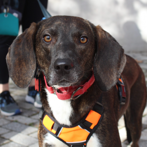If you’re looking for a gentle pup who will shower you with love and be a loyal walk buddy for life, I’m your guy! Apply to adopt me today!