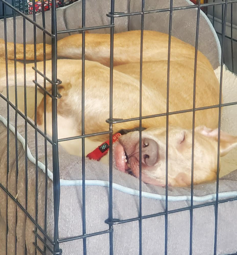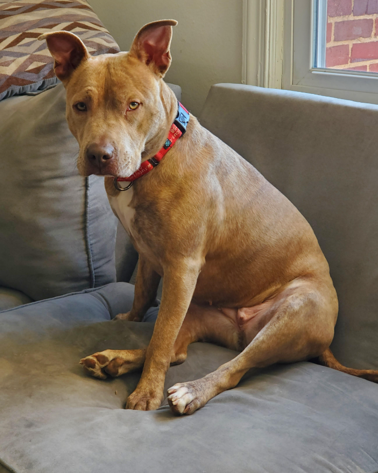 Something I’m working on is being calm outside the house, since I can get overstimulated when there is too much going on. I’m practising walking on a loose leash even when I have something cool to chase, but my foster family says I’m easy to re-direct if something startles me or if I start getting distracted. They think once the D.C. sidewalks are back to not being pure ice, I might be a little more confident walking around.