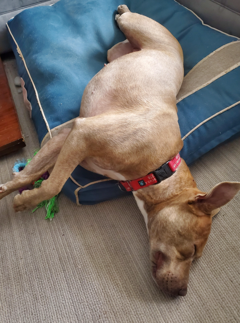 My foster guardian says: “My favorite thing about Vela are the hilarious sounds she makes to communicate with her people! I never knew a dog with such vocal range!